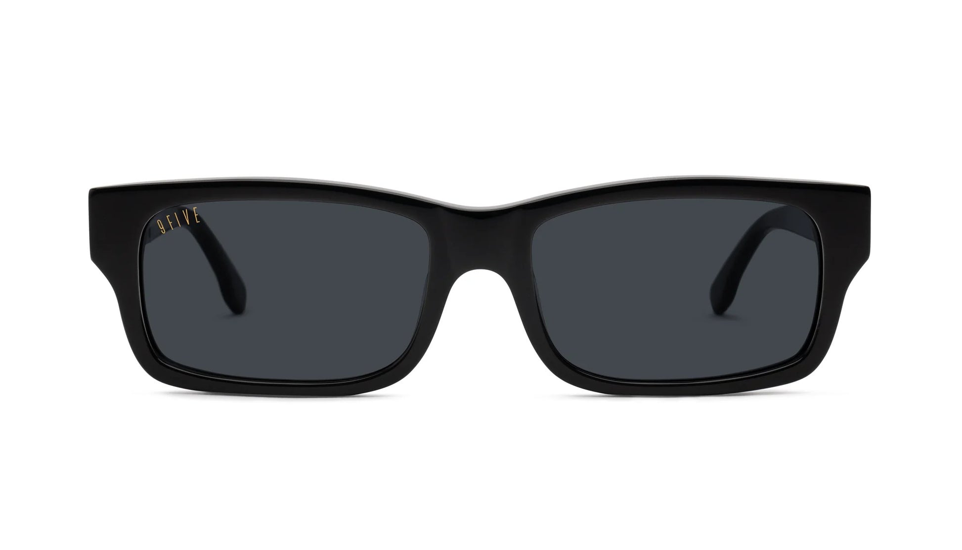 - Black polarized lenses, either pure or CR-39 (100% UV protection), with the 9FIVE logo.