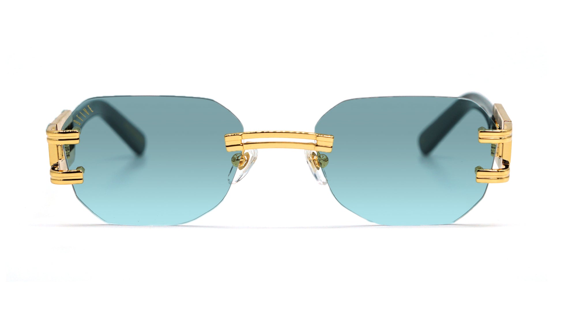 - Teal gradient (100% UV Protection) lens with gold printed 9FIVE logo